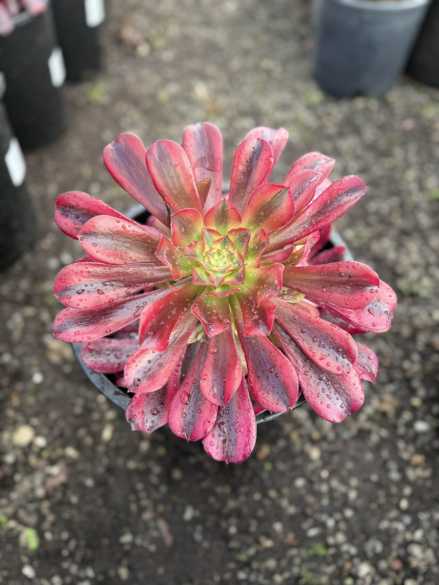 The Aeonium ‘Medusa’ features dramatic rosettes of dark, glossy foliage that add a touch of sophistication to any garden or retail display. With its striking architectural form and deep green color, this succulent is perfect for creating eye-catching arrangements. Water: 2, Light: 3, General Care: 1