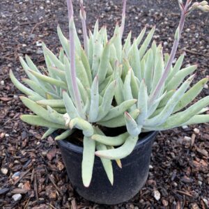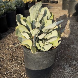 Featuring silvery, spoon-shaped leaves, the Cotyledon Orbiculata ‘Silver Dollar’ is a stunning addition to both exterior landscapes and retail shelves. Drought-tolerant and low-maintenance, this succulent is perfect for sunny locations and pairs well with other drought-resistant plants.