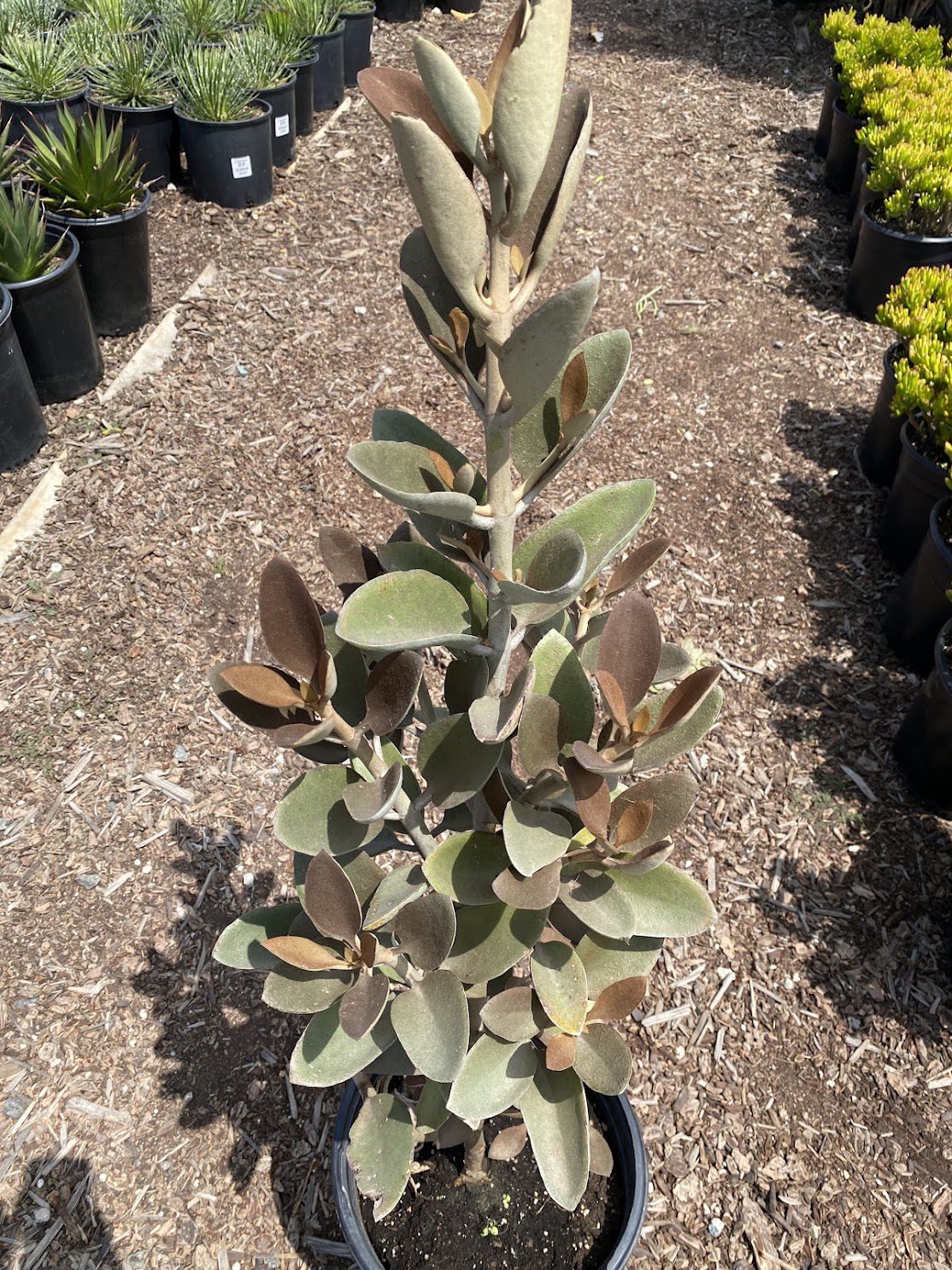 With its velvety, cinnamon-colored leaves arranged in upright clusters, the Kalanchoe Orgyalis brings warmth and texture to any landscape or retail space. This striking succulent is a drought-tolerant option that prefers bright light conditions, making it an excellent choice for both experienced gardeners and novice plant enthusiasts looking to create inviting and visually appealing settings.