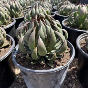The 10″/5G Mangave ‘Racing Stripes’ is a showstopper for exterior landscapers looking to add a modern touch to outdoor plantings. With its bold striped foliage and spiky rosette form, this plant enhances visual interest in various settings. Drought-tolerant and low-maintenance, it thrives in bright light conditions and well-draining soil. Ideal for creating contemporary landscape designs and focal points that demand attention.