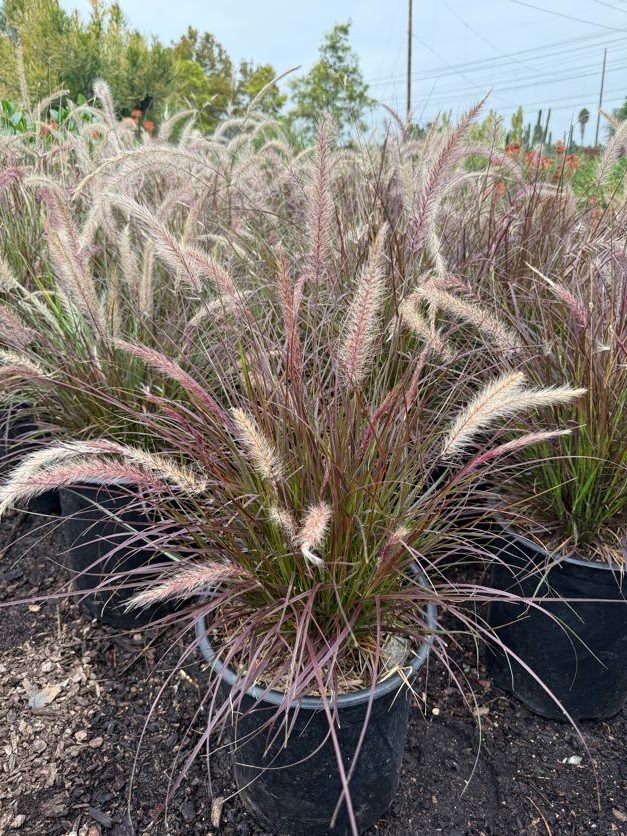 The Pennisetum Set. Rubrum features rich burgundy foliage that adds color and texture to any landscape or display. With its fountain-like growth habit, this ornamental grass is perfect for creating visual interest in outdoor areas. Tolerant of varying sun exposure and low water requirements, it’s a popular choice for creating dynamic garden borders and containers.