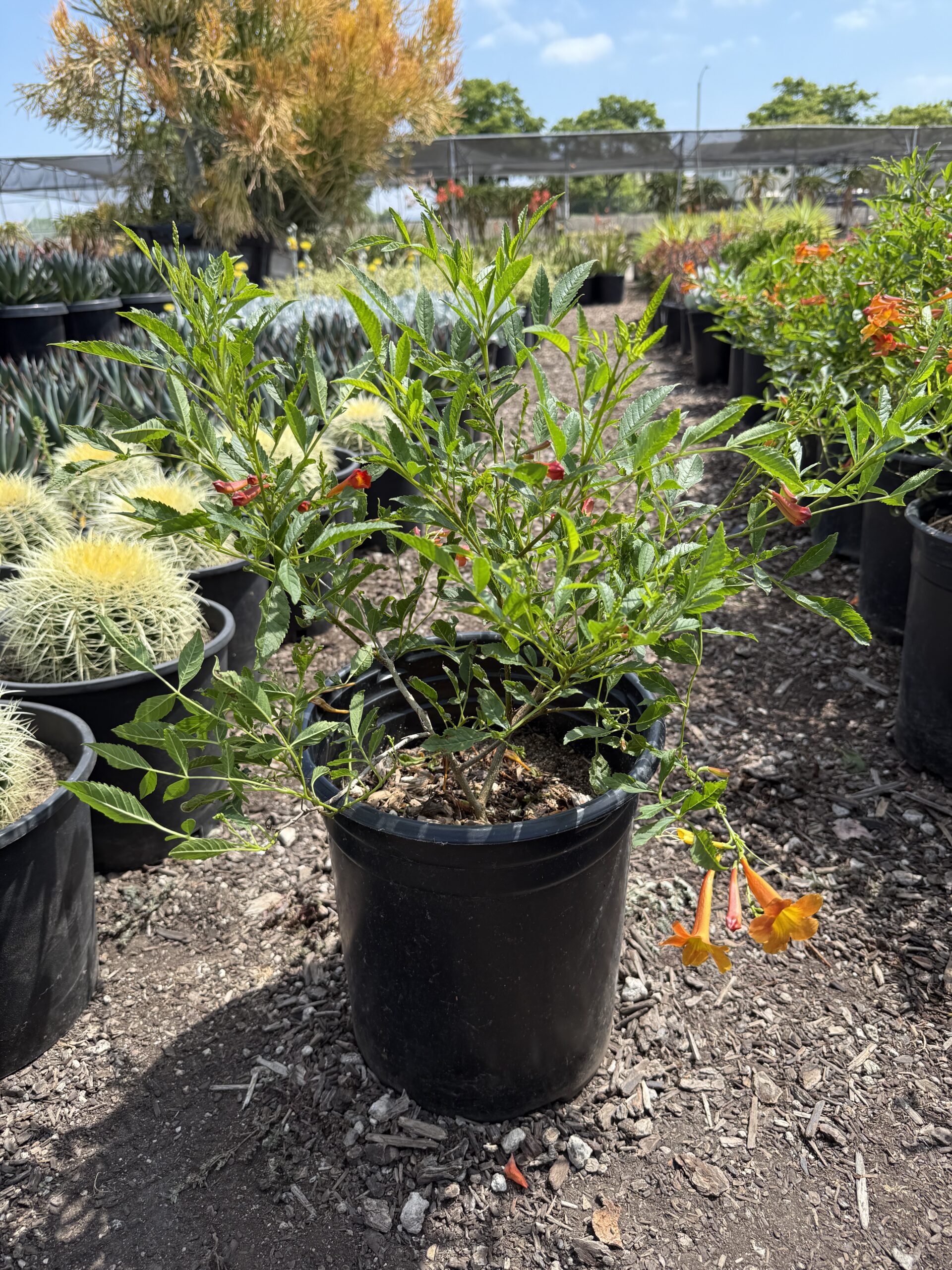 Brighten landscapes with the vibrant Tecoma Stans Orange! This shrub features luscious, trumpet-shaped blooms in a striking orange hue, perfect for creating eye-catching focal points in any outdoor setting. With a high tolerance to varying conditions, including heat and wind, this plant is a favorite among exterior landscapers for its durability and seasonal interest. Enjoy easy maintenance and excellent resilience to pests and diseases.