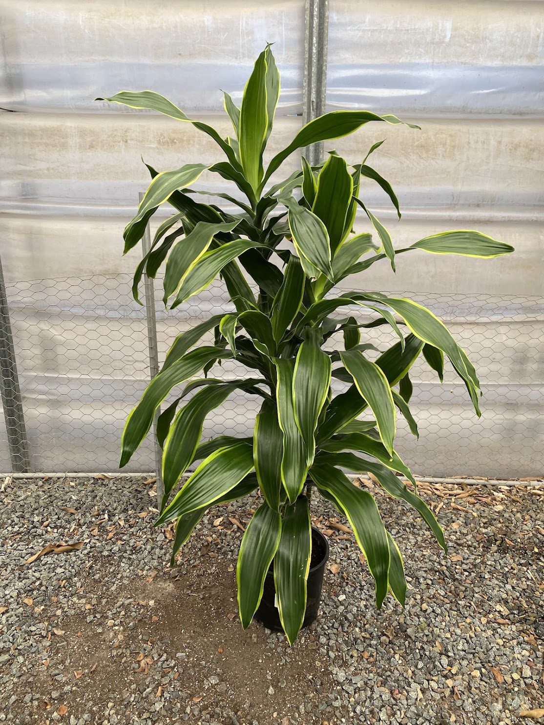 The 10″ Dracaena Carmen boasts bold, colorful foliage with vibrant tips, creating a lively atmosphere in interiorscapes or retail settings. This 5-foot beauty is a showstopper, drawing attention with its height and beauty. Easy-care plant suitable for both professionals and enthusiasts.