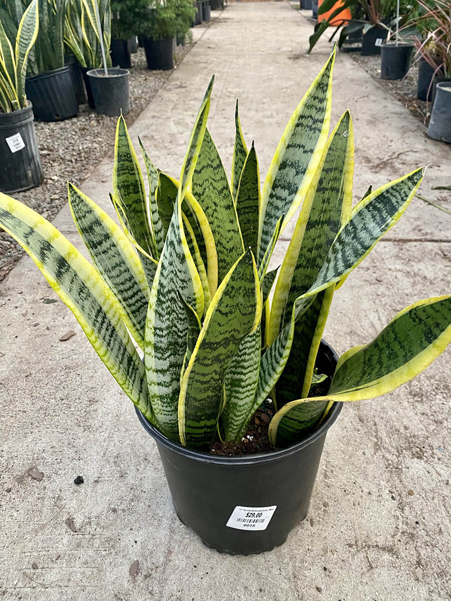 The Sansevieria Laurentii, with its striking, upright leaves featuring bold yellow edges, makes a statement in any setting. This small variety is easy to care for, tolerating infrequent watering and low light levels. Perfect for interiorscapes looking to add a touch of modern sophistication or for retail garden centers seeking a trendy and eye-catching plant.