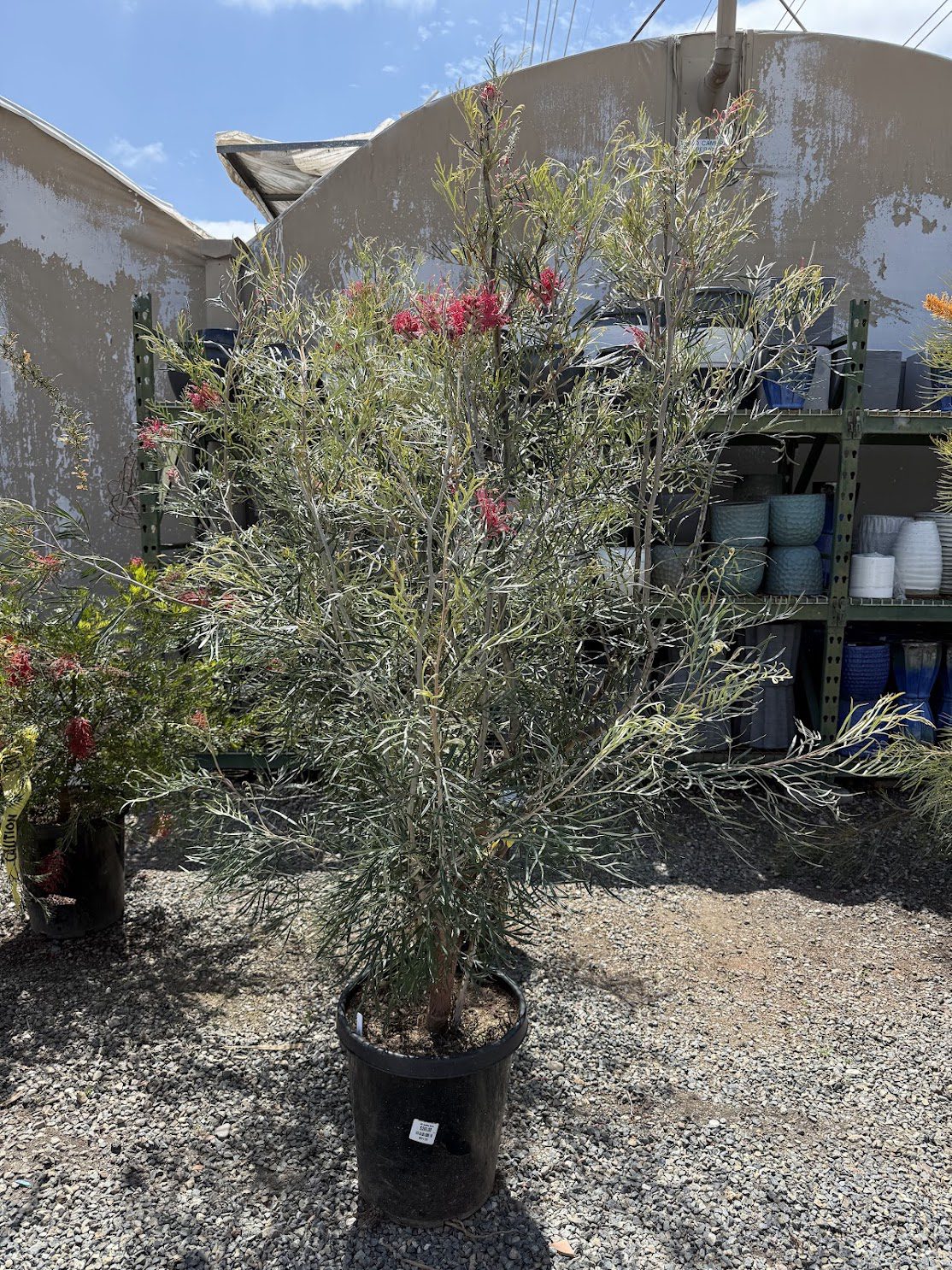 Grevillea Sylvia features vibrant red flowers adorning its lush green foliage, making it a standout choice for exterior landscapers looking to add a pop of color to any landscape. This hardy plant thrives in diverse climates, providing long-lasting seasonal interest. For retail garden centers, its eye-catching blooms attract customers seeking easy-care plants that brighten up any outdoor space. Water: 2, Light: 3, General Care: 2