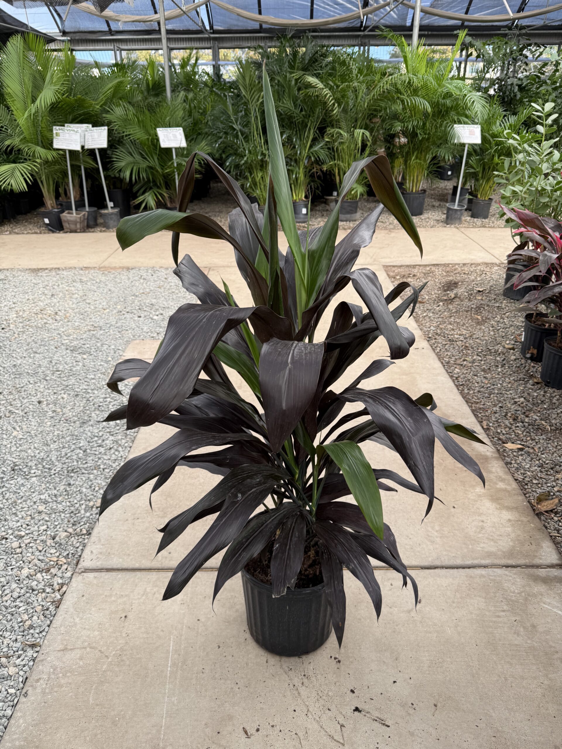 The Cordyline Black Magic is a dramatic statement plant known for its stunning dark purple foliage that brings a touch of exotic elegance to interiorscapes and retail gardens. Thriving in bright light conditions with moderate watering needs, this plant is ideal as a focal point in both modern and traditional settings. Perfect for creating bold and sophisticated displays that are sure to captivate attention.