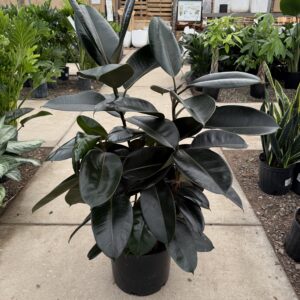 Make a statement with the elegant Ficus Decora Burgundy. Standing at 5 feet tall with a braided trunk, this plant adds height and visual interest to interiorscapes and retail settings. Its deep green leaves with hints of burgundy create a luxurious ambiance. Requires moderate watering and medium to bright light for optimal growth. Perfect for upscale environments seeking a touch of sophistication.
