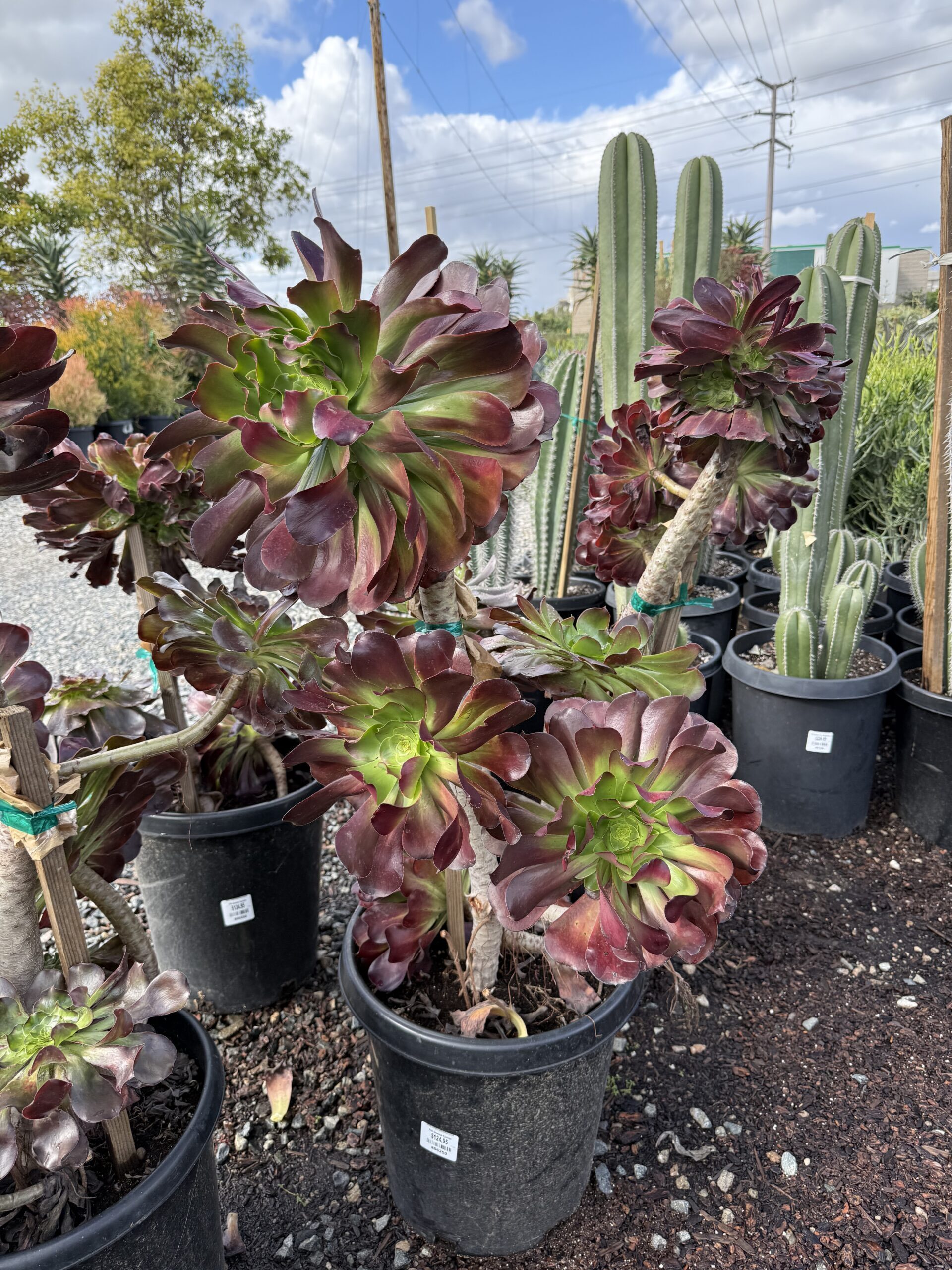 Standing out with its dark, glossy leaves and rosette form, the 15G Aeonium Cyclops is a statement plant for landscapes and garden centers. Suitable for bright light conditions, this plant is visually stunning and requires moderate care, catering to enthusiasts looking for unique specimens to add to their collections. Its resilience to varying light levels makes it adaptable to different retail settings.