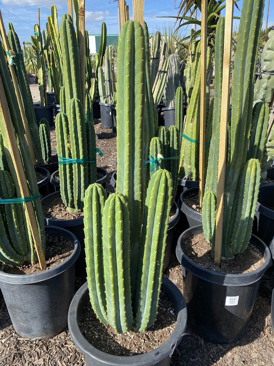 The Echinopsis Pachanoi “San Pedro” features iconic slender, columnar stems with a stunning shade of green and notable ribs. Its impressive size and unique appearance make it a standout choice for interior displays and retail settings, attracting plant enthusiasts. With moderate water and bright light requirements, this cactus is easy to care for, making it ideal for beginners and seasoned plant lovers alike.