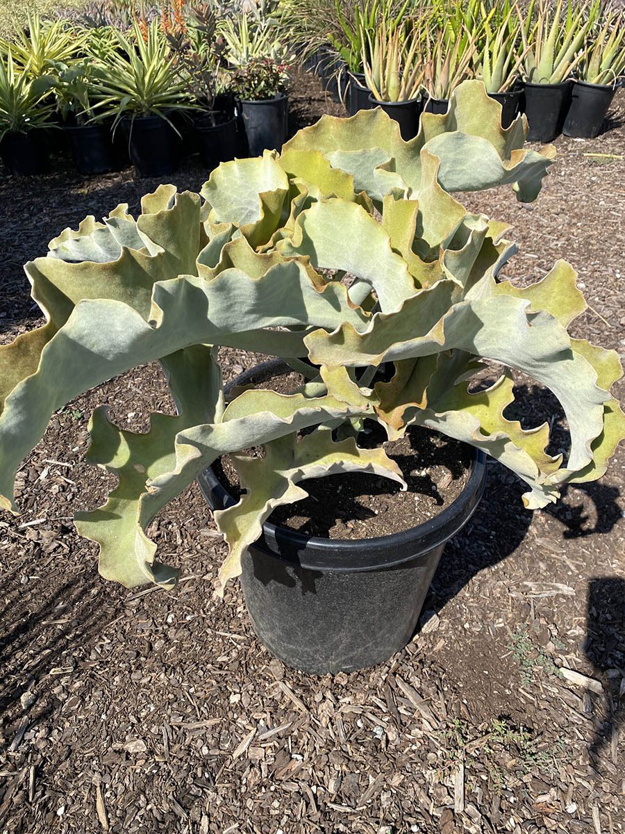 With its large, paddle-shaped leaves covered in silvery fuzz, the 15G Kalanchoe Beharensis makes a bold statement in any landscape design. Suitable for both interiorscapes and retail centers, this plant prefers infrequent watering and bright light conditions. Its eye-catching appearance and low-maintenance care make it a must-have for plant enthusiasts.