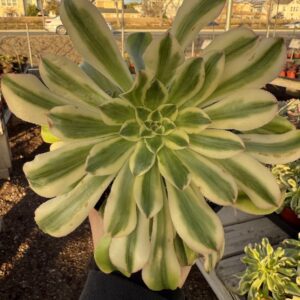 The Aeonium Cyclops features stunning rosettes of dark purple leaves that intensify in color with increased sun exposure, making it a captivating addition to exterior landscapes and retail collections. With moderate water and light needs, this plant offers a pop of color and texture for various outdoor settings and store displays.