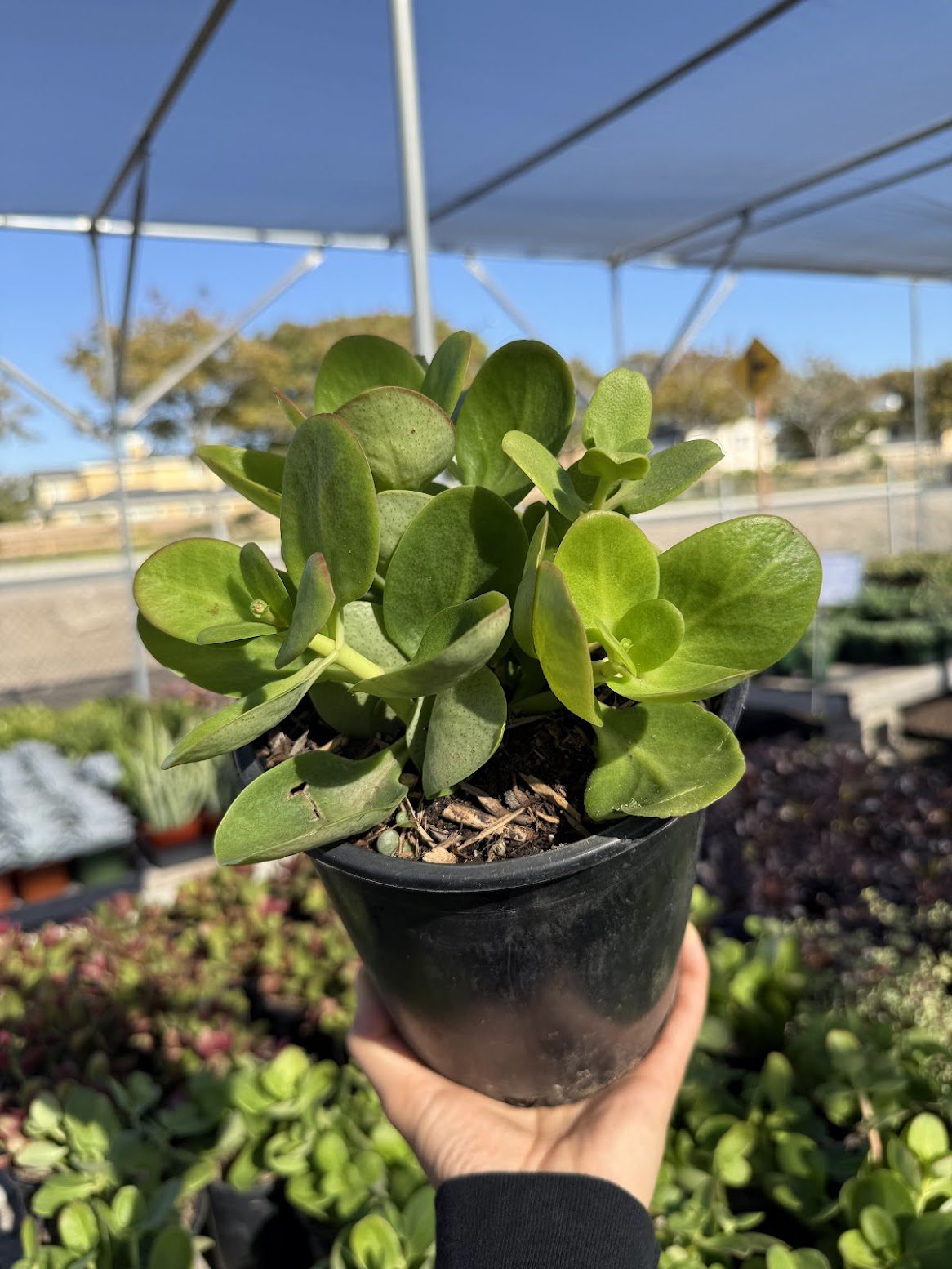 This Crassula variant features vibrant green succulent leaves, forming dense mounds perfect for interior design and retail displays. Its low water needs make it a resilient choice for busy garden centers. A versatile option for both landscaping and retail setups.