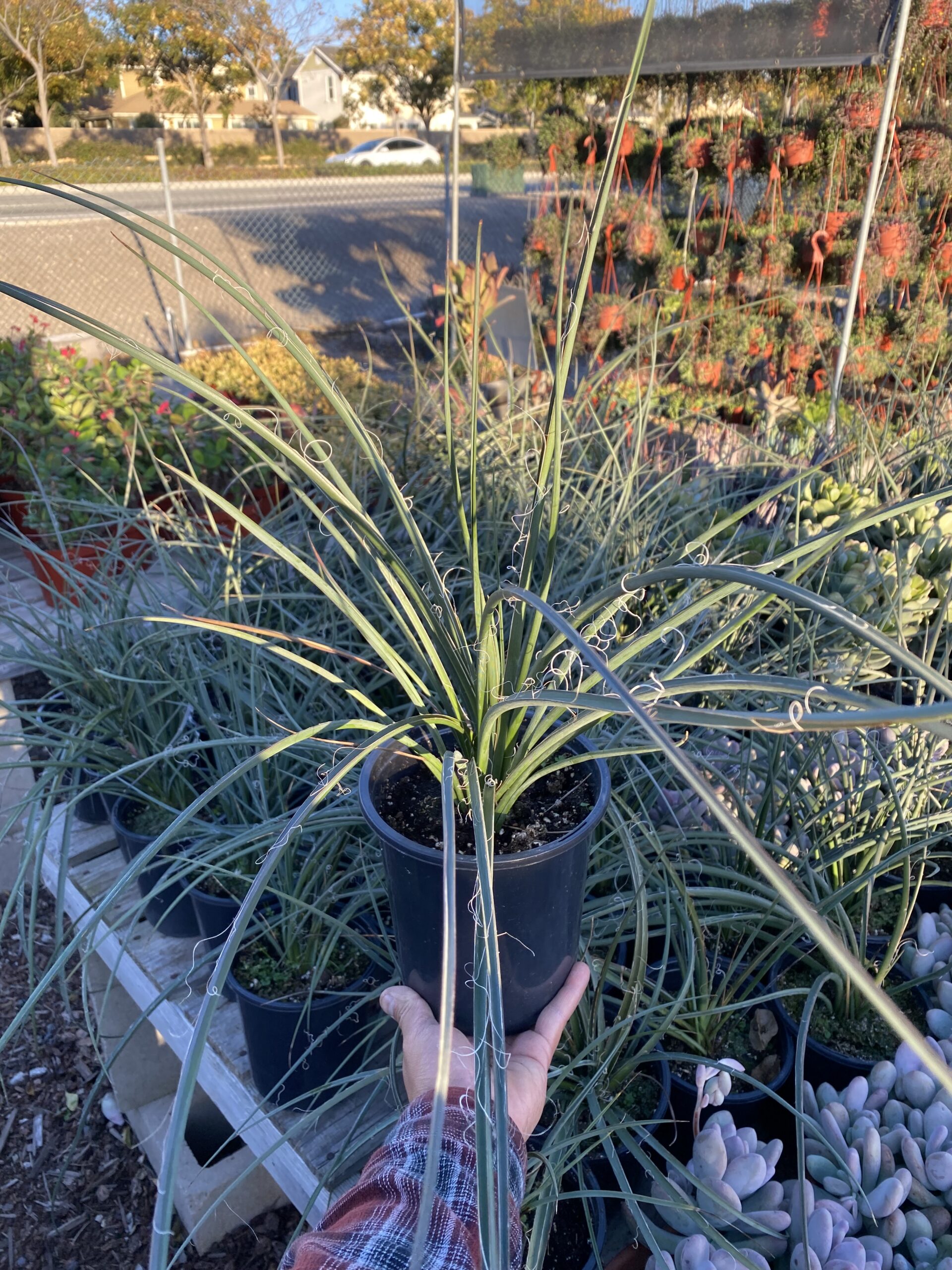 Hesperaloe parviflora is a vibrant, hardy plant known for its tall, red flowering stalks. With a need for bright light, it works well in a variety of outdoor landscaping designs, providing height variations and drawing attention. For retail settings, this plant is a standout in displays and easy to care for—making it a customer favorite.