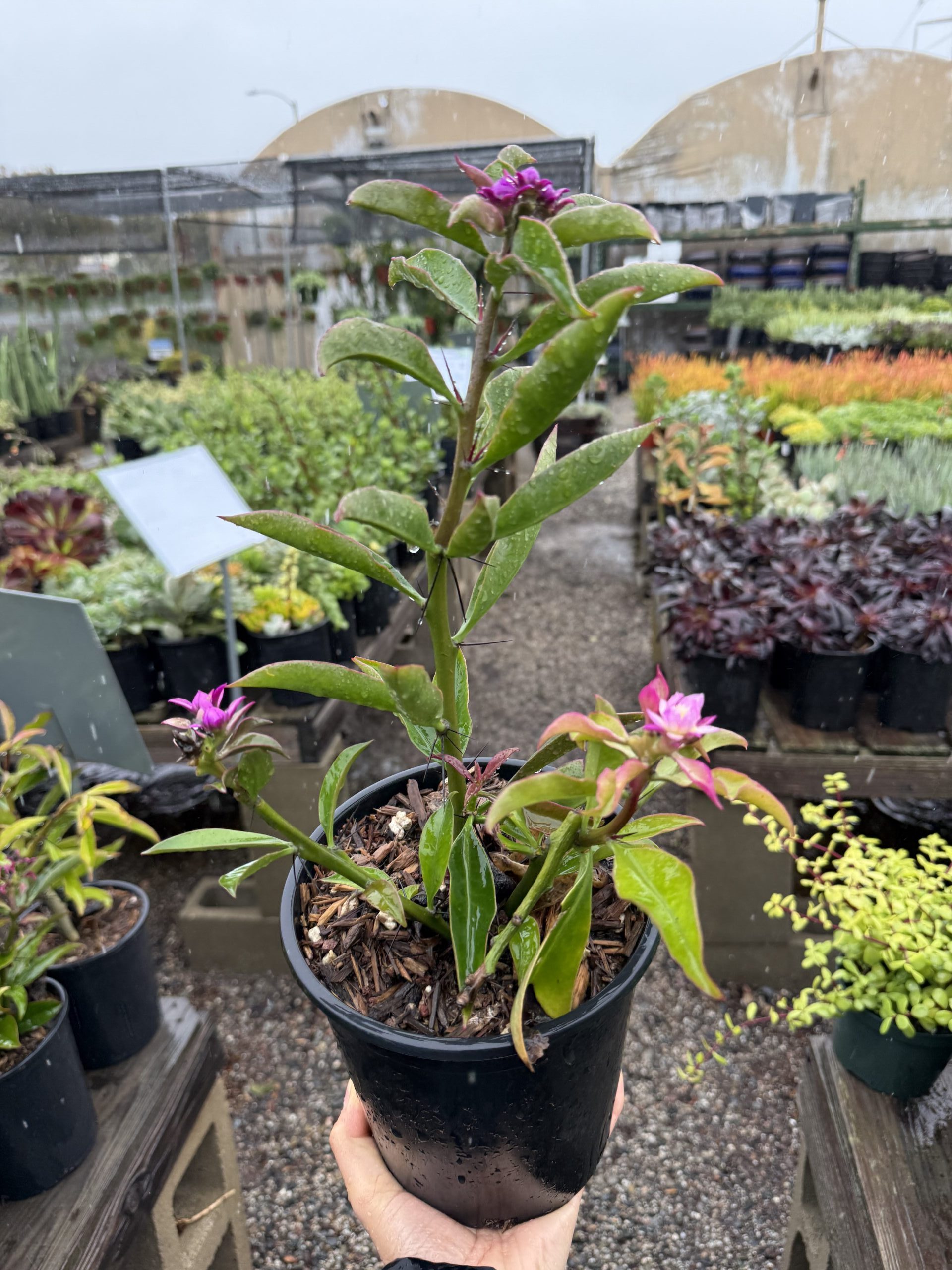 Elevate your retail displays with the exquisite Pereskia Grandiflora Royal Queen! This unique cactus boasts showy, bright pink flowers against glossy green leaves, adding a touch of elegance to any garden center. Known for its low-maintenance nature and resilience, it is an ideal choice for beginners and enthusiasts looking to add a touch of sophistication to their plant collections. A must-have trending variety for retail spaces.