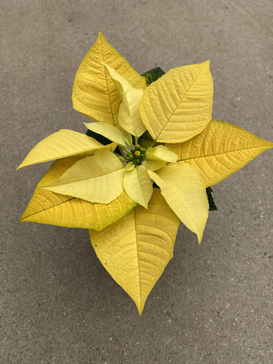 The 2.5″ Poinsettia ‘Golden Glow’ is a festive favorite with vibrant golden-yellow bracts that add a pop of color to holiday displays. Ideal for retail garden centers, this plant attracts customers with its eye-catching beauty and minimal care requirements. Keep soil moist and place in bright, indirect light for best results.