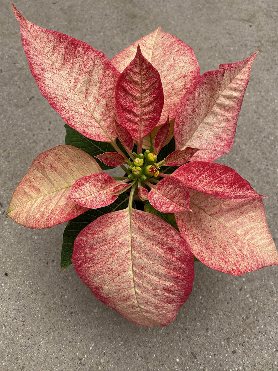 The 2.5″ Poinsettia ‘Ice Crystal’ offers a modern twist on a classic holiday favorite with its icy white bracts that resemble frost-kissed petals. Perfect for seasonal retail displays, this petite plant adds a touch of winter charm to any setting. With minimal water requirements and low light preferences, it’s an easy-care option for adding festive cheer to homes and stores alike.