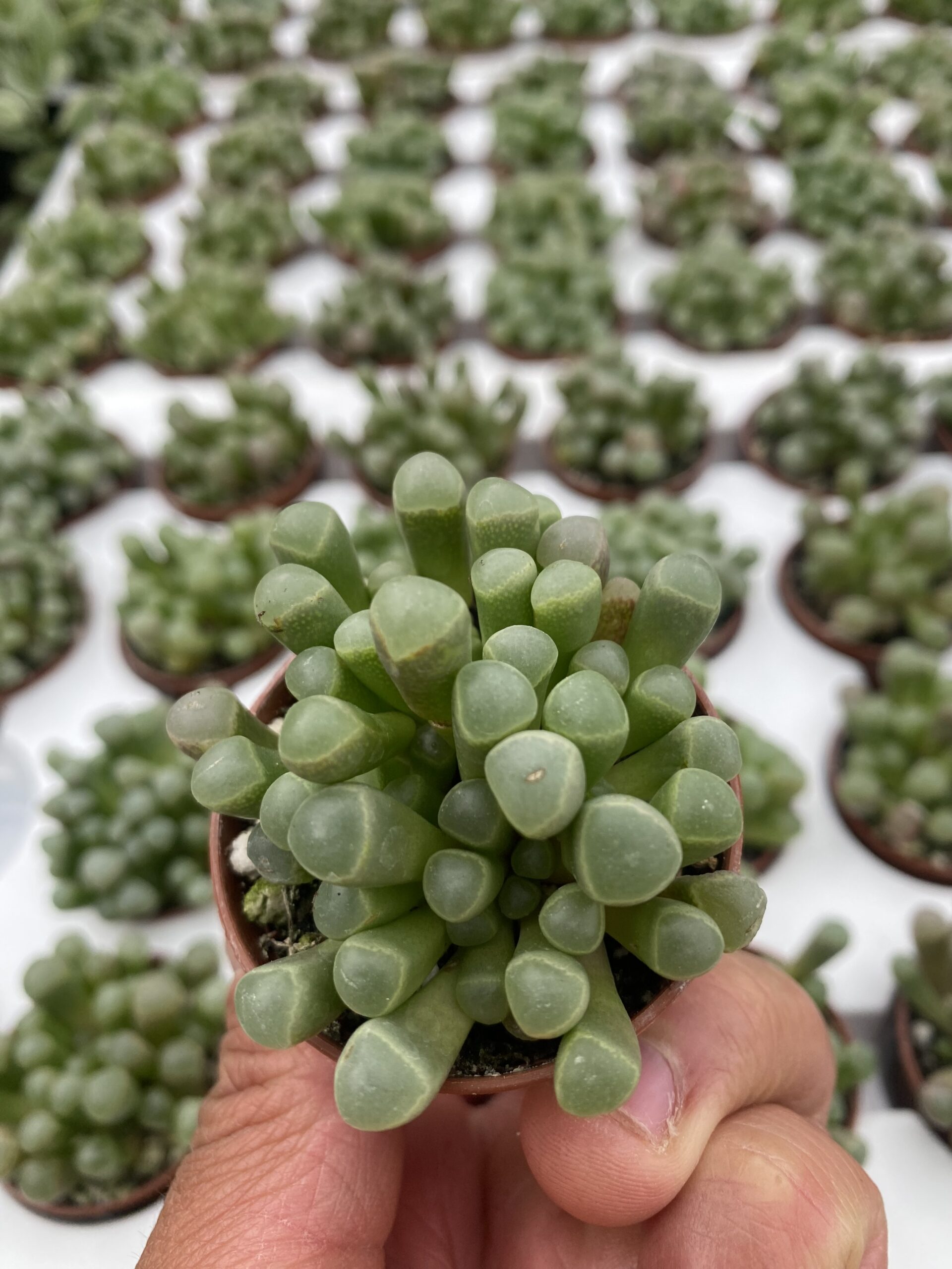 The Fenestraria ‘Baby Toes’ is a charming succulent known for its tiny, cylindrical leaves resembling miniature toes. Ideal for creative interior plant designs and small retail containers, this plant requires minimal water and bright light to thrive. Easy-care and visually appealing, it’s a must-have for both exterior landscapers focusing on unique plant selections and retail garden centers seeking trendy offerings.