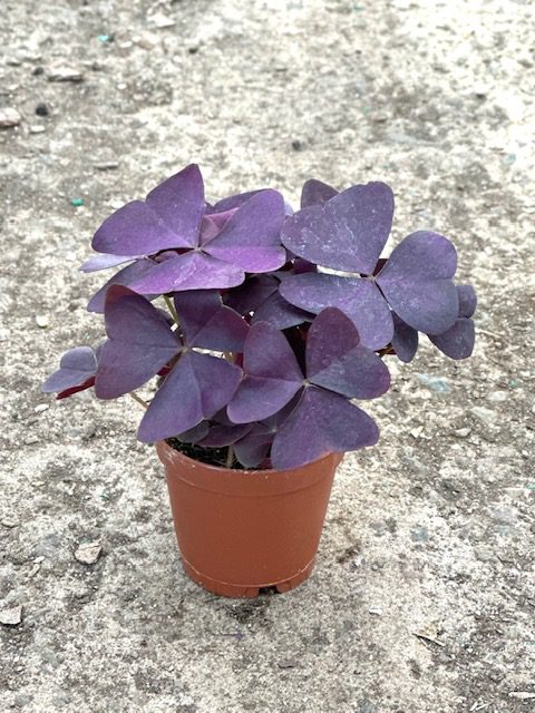 The Oxalis Triangularis ‘Purple Shamrock’ features delicate triangular leaves in a striking shade of purple, adding a pop of color to any space. Perfect for interiorscapes, this plant thrives in moderate light and requires frequent watering. Its compact size makes it ideal for retail displays, attracting customers with its vibrant appearance. Easy-care for beginners.