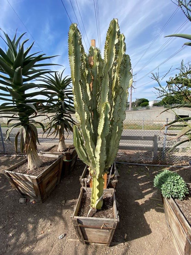 The 24″ Euphorbia Ammak, standing at 7 feet tall, is a statement plant that exudes elegance with its upright, branching stems topped with small green leaves. A favorite among exterior landscapers looking to create focal points in larger gardens or public spaces, this Euphorbia offers a unique architectural form and seasonal interest. With moderate water needs (2), it thrives in bright light (3), and requires moderate care (2). Ideal for adding height and structure to diverse outdoor settings.