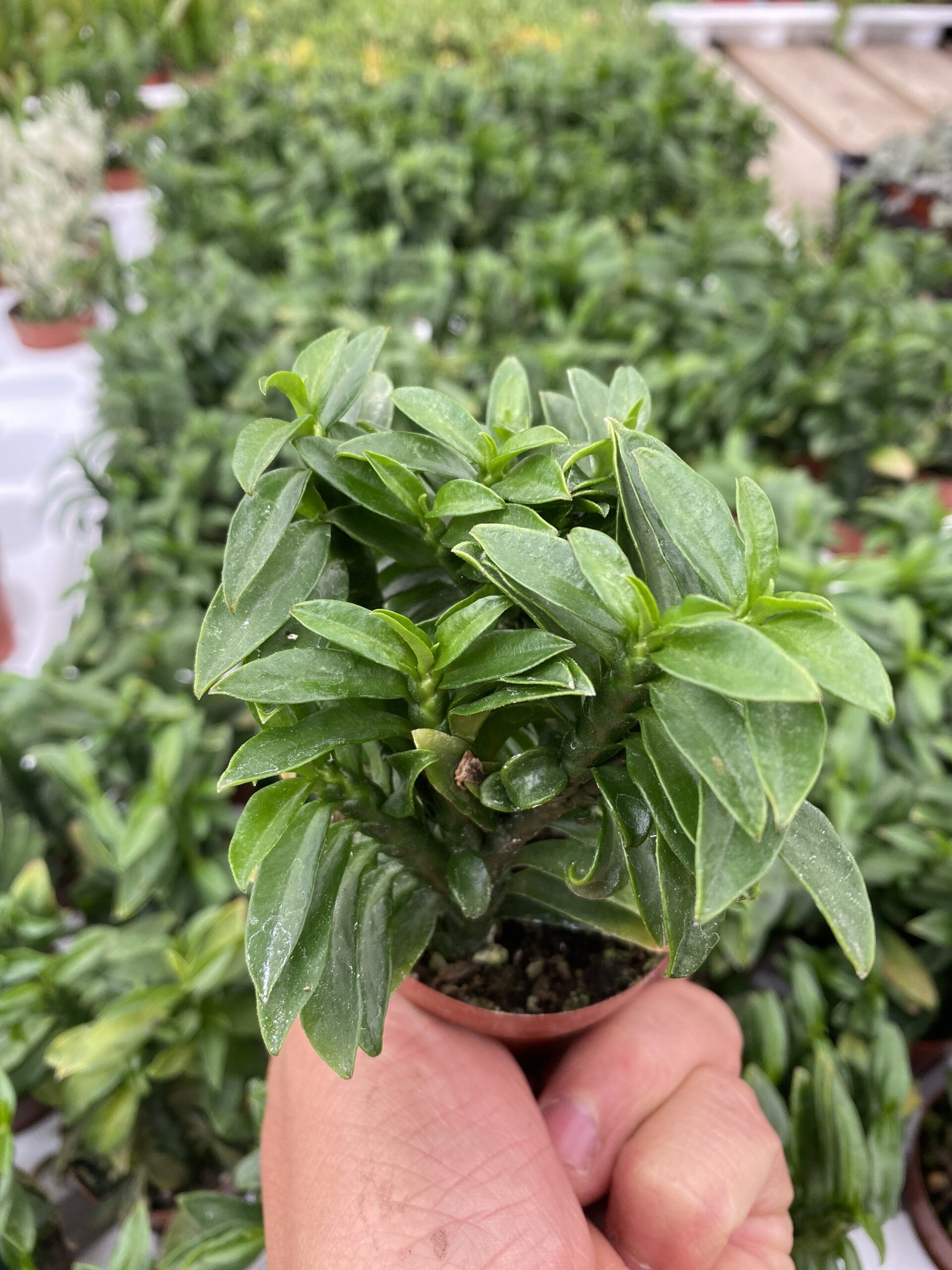 The ‘Devil’s Backbone Green’ is a striking succulent with zigzag stems and fleshy leaves, adding a touch of drama to any indoor or retail space. This plant thrives in moderate light conditions and requires infrequent watering, making it a hassle-free choice for busy environments. Its unique form makes it a standout piece in various decorative arrangements.