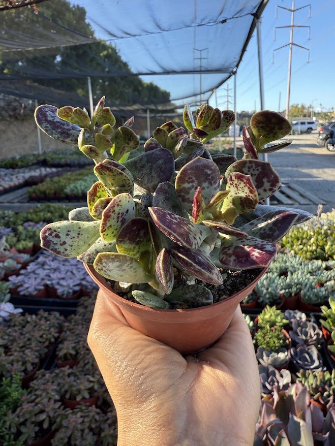 The Adrosmanthus Maculatus is a unique succulent with small, spotted leaves that create visual appeal in any setting. Perfect for retail garden centers looking for trendy, eye-catching plants to attract customers. Easy-care and adaptable, suitable for various indoor and outdoor settings. Ideal for small planters or terrarium displays.