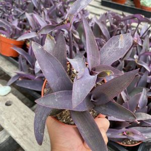 The Aeonium Dodrantale is a striking succulent with rosettes of dark burgundy leaves that form a dramatic contrast. Its bold color and architectural shape make it a statement piece in any landscape or retail display. With a preference for moderate water and bright light, this plant is suitable for landscapers looking to add a touch of elegance to outdoor spaces. A unique addition for eye-catching botanical creations.