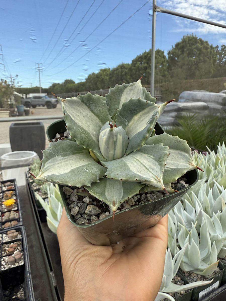 The 4″ Agave isthmensis Variegata SQ features striking variegated leaves with elegant patterns, adding a touch of sophistication to any landscape design. Ideal for outdoor installations and retail garden centers seeking drought-tolerant statement plants. This agave requires infrequent watering and thrives in bright, sunny locations. Moderate care for enthusiasts interested in low-maintenance but elegant options.