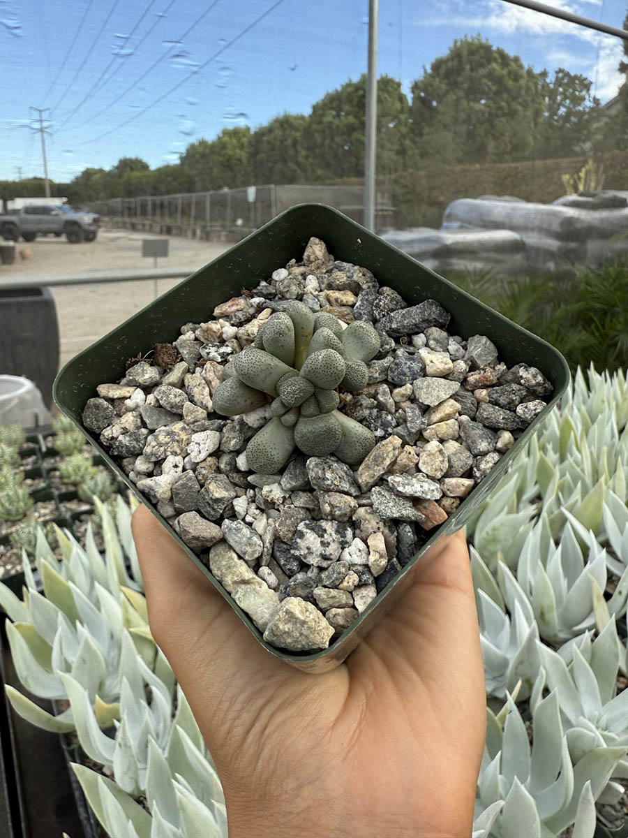 The Aloinopsis schooneesii SQ features compact rosettes of succulent leaves with a fascinating surface texture, making it a popular choice for both exterior landscapers and retail garden centers. This plant requires infrequent watering and thrives in bright light conditions, offering easy care for all levels of expertise. Its unique appearance makes it a standout choice for modern landscape designs and retail arrangements.