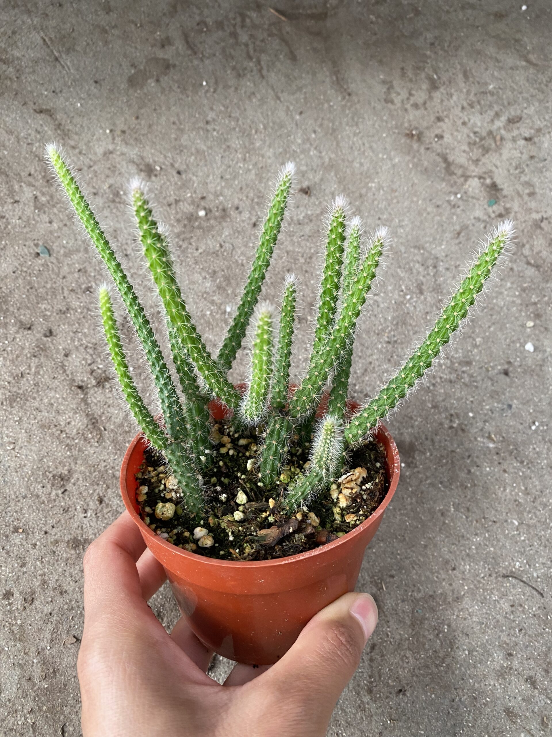 The Aporocactus Flagelliformis Rat Tail is a unique succulent featuring trailing stems with slender, cylindrical green segments resembling rat tails. Perfect for hanging baskets and vertical gardens in retail settings, it adds a whimsical touch to any display. Requires moderate watering and bright, indirect light to thrive. Easy care plant suitable for beginners.