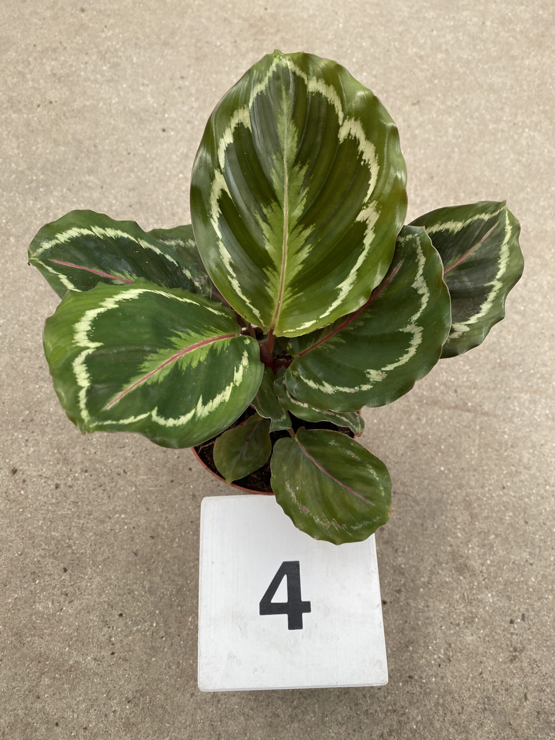 The Calathea Medallion, featuring large, round, patterned leaves in shades of green and purple, adds a tropical touch to any space. Perfect for low-light interiorscapes and retail corners, it offers easy care and eye-catching beauty. Water: 2, Light: 1, General Care: 1