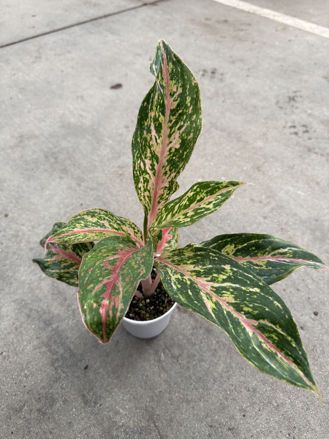 The Chinese Evergreen Sparkling Sarah features striking green and silver variegated leaves, perfect for adding a touch of elegance to any setting. This hardy plant is ideal for both interiorscape designs and retail settings, thriving in various light conditions. Water: 2 Light: 2 General Care: 1
