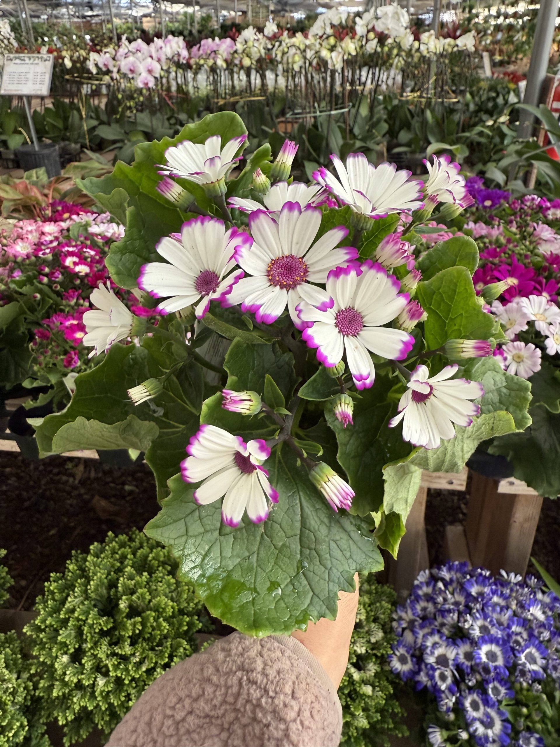 The 4″ Cineraria is a charming plant with delicate, brightly colored flowers that bring a splash of color to interiorscapes and retail shelves. Thriving in bright, indirect light and requiring moderate watering, this plant is a favorite for adding seasonal flair to displays and attracting gardening enthusiasts. Its easy care nature makes it a versatile choice for varied indoor conditions.