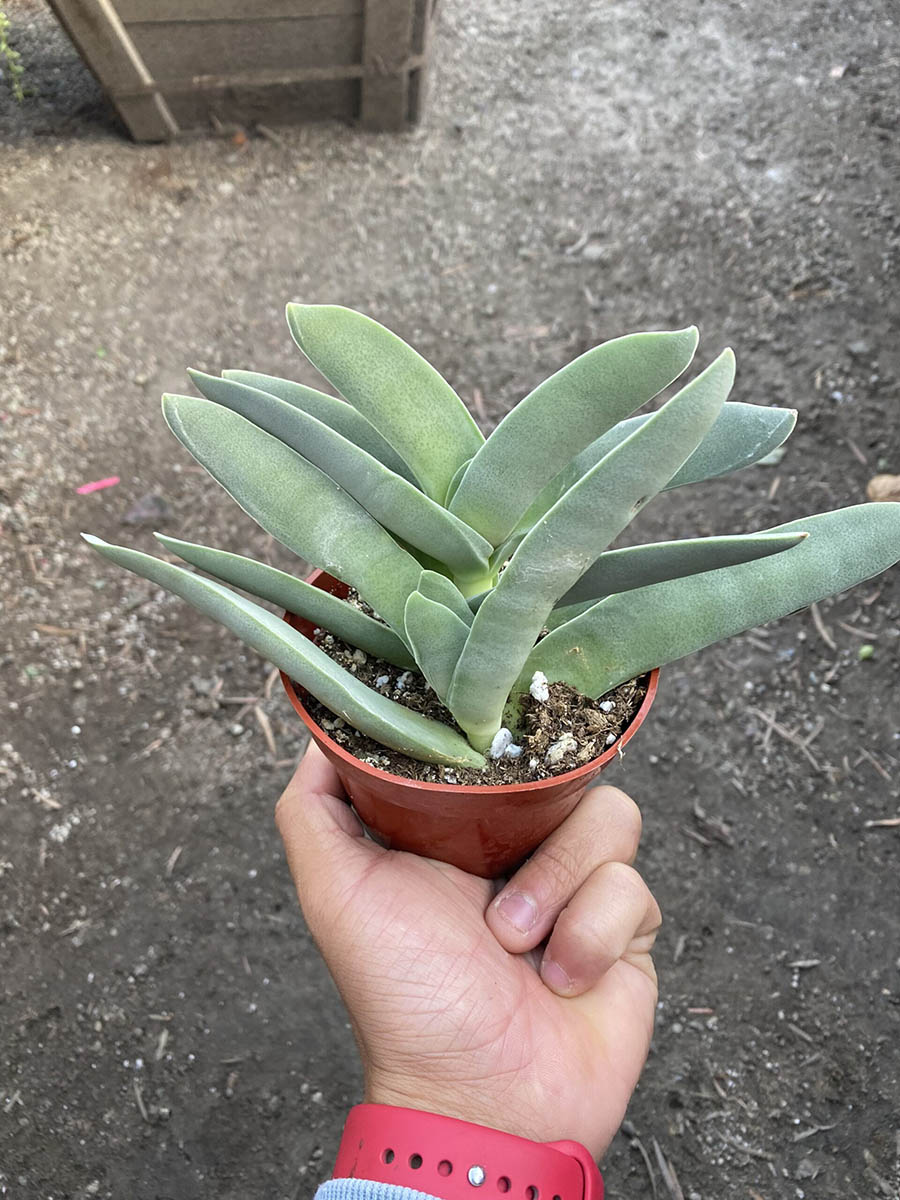 The Crassula Falcata, known for its striking crescent-shaped leaves, offers a modern aesthetic for various indoor settings. This plant requires moderate water and bright light, making it an ideal choice for interiorscapes and retail displays seeking a contemporary touch. Water: 2