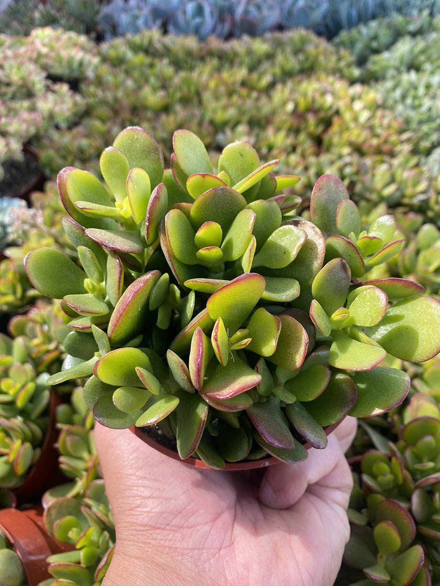 The Crassula Jade Crosby features delicate, jade-green leaves in a compact rosette form, ideal for interiorscapes and retail displays. Its unique shape and vibrant color make it an attention-grabbing addition to any setting. With minimal water and moderate light needs, this plant is perfect for beginners seeking an easy-care succulent.
