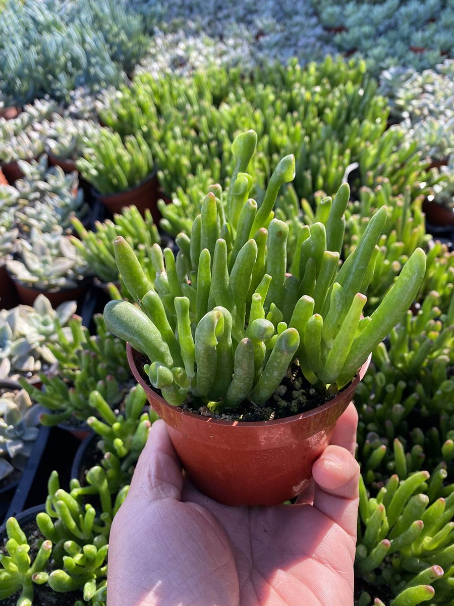The Crassula Jade Gollum boasts quirky, tubular leaves with red tips, resembling the famous character’s fingers. A charming addition to succulent collections and retail setups alike, this plant thrives in bright light and minimal water, making it an easy-care choice for both landscaping professionals and garden center buyers. Ideal for creating intriguing focal points.