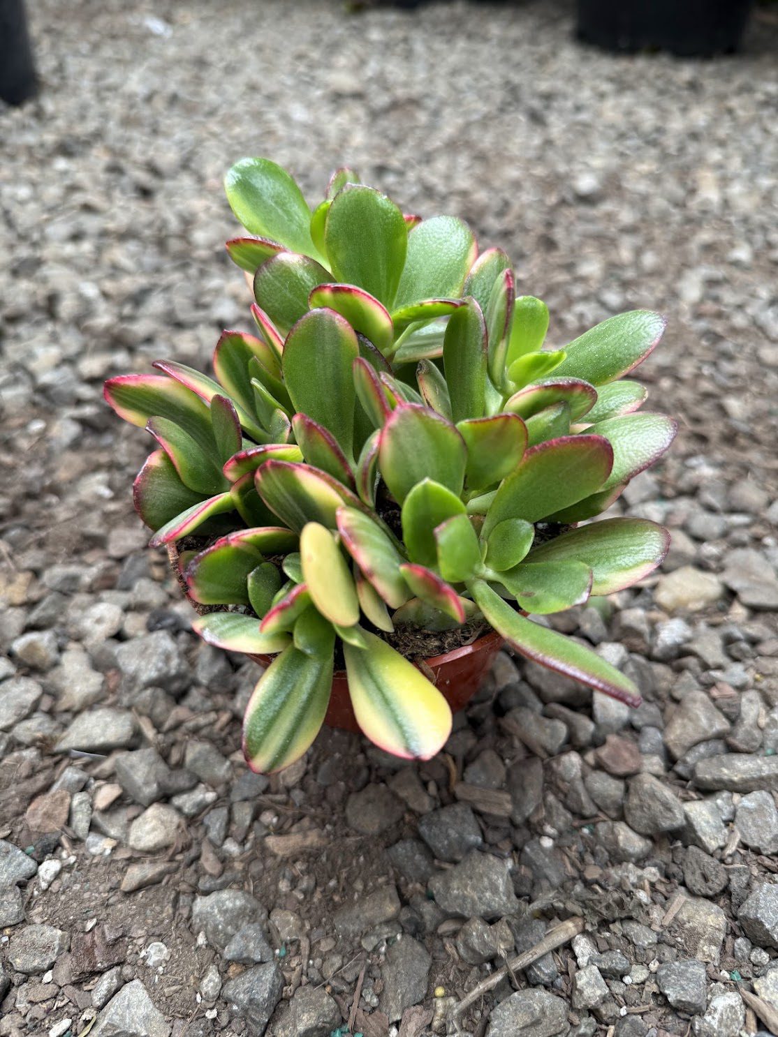The Crassula Jade Tricolor features vibrant green leaves with hints of red and cream, creating a stunning color contrast. Perfect for interiorscapes and retail displays, this succulent is low-maintenance, making it an excellent choice for beginners. Water: 2