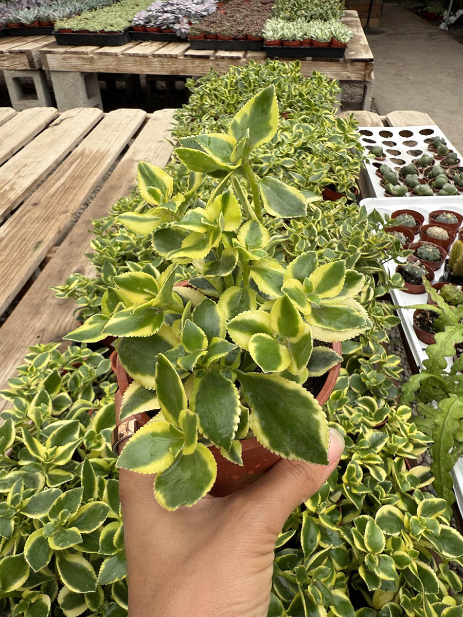 This Crassula Sarmentosa Variegata in a 4″ size features stunning variegated leaves with a cascade-like growth pattern, making it a perfect addition to interior landscapes and retail settings. Its compact size and unique leaf texture attract attention effortlessly. With minimal water needs (1), moderate light requirements (2), and easy general care (1), this plant is ideal for beginners and enthusiasts looking to enhance their spaces with a touch of elegance.