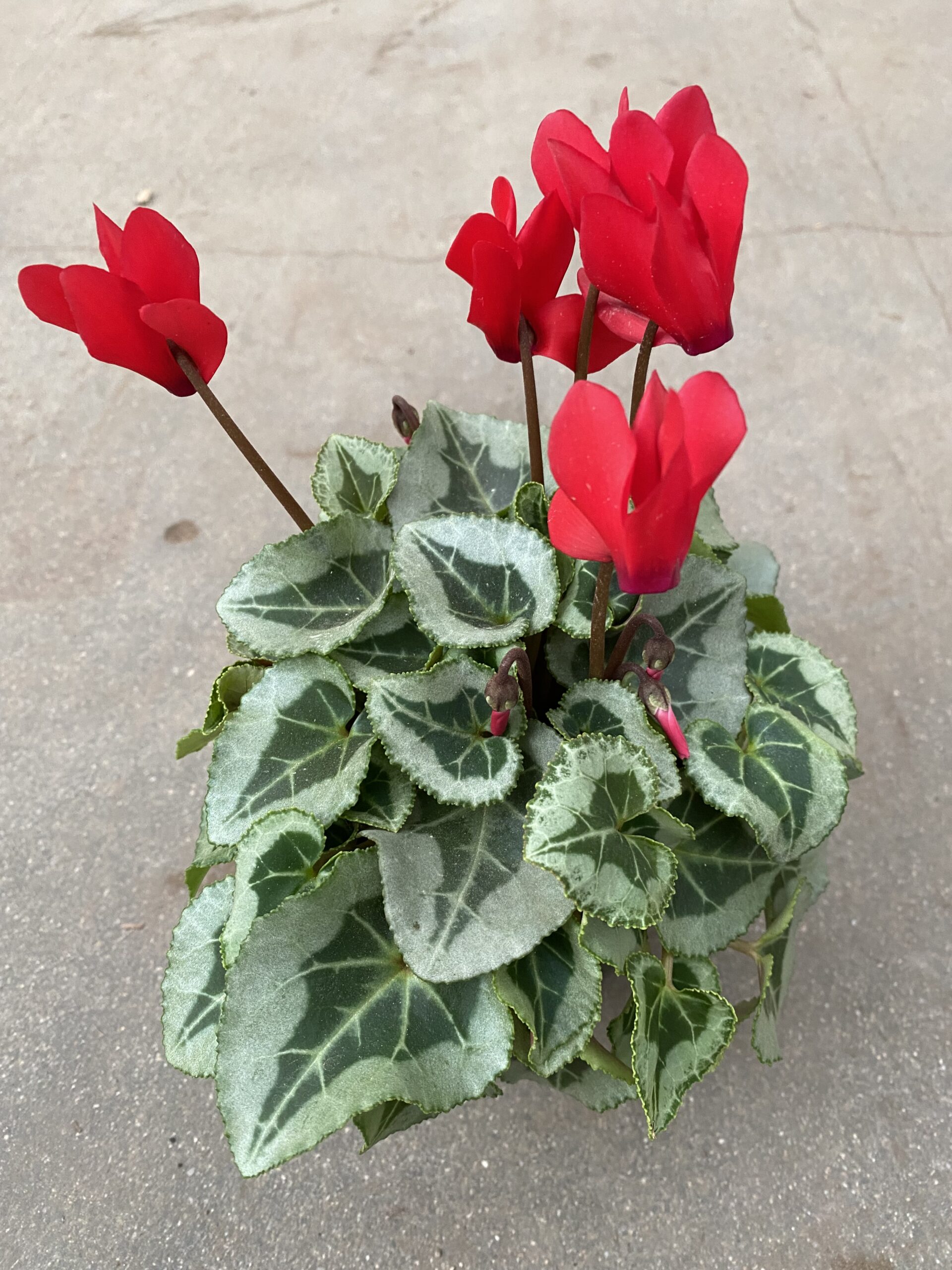 The Cyclamen Silver Leaves feature delicate, silver-veined foliage that adds a touch of soft elegance to any setting. Ideal for retail displays, this plant thrives in bright light and requires moderate watering. Its charming blooms and compact size make it a delightful addition to retail shelves or interiorscape arrangements, appealing to both beginners and plant enthusiasts.