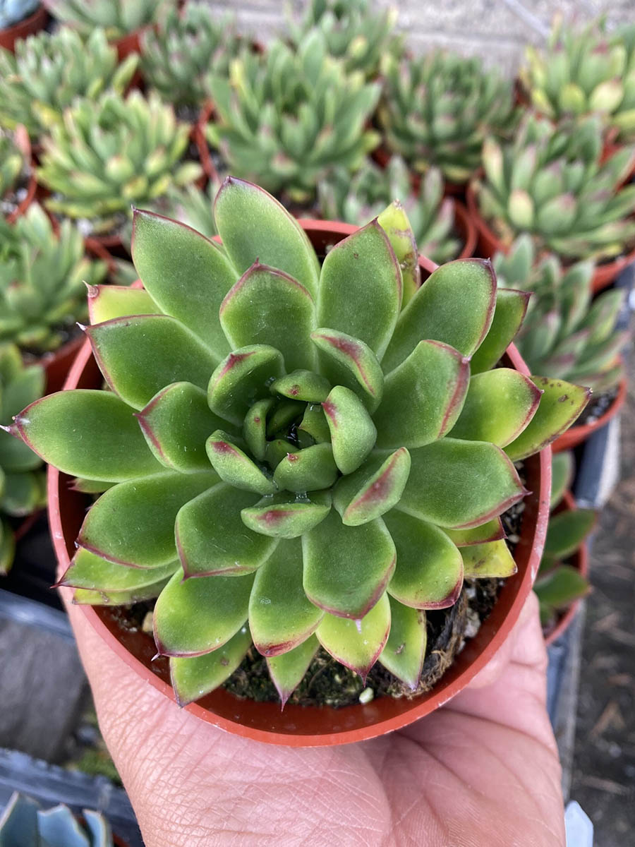 The Echeveria Agavoides ‘Maria’ features distinct triangular leaves in a soft green hue, creating a visually appealing addition to any landscape or retail space. Ideal for low-maintenance outdoor settings, this plant offers seasonal interest and a pop of color. Suited for interiorscapes and retail displays, it attracts attention with its unique form and ease of care.