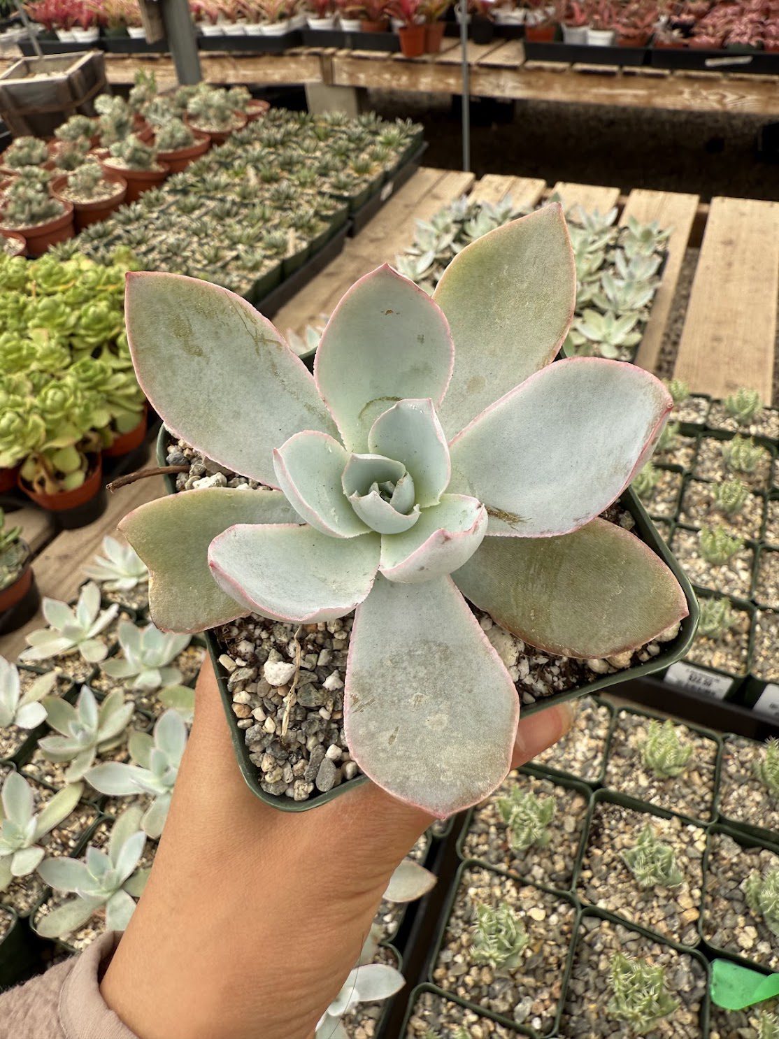 The Echeveria Cante is a compact succulent with rosettes of fleshy, blue-green leaves giving it a striking appearance. Ideal for interiorscapes and retail displays, this low-maintenance plant adds a pop of color and texture. Water: 1, Light: 2, General Care: 1