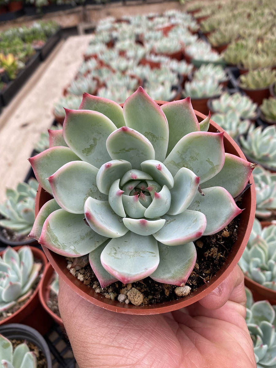 The Echeveria Colorata is a charming succulent characterized by rosettes of blue-green leaves that blush pink in sunlight. Ideal for both landscape design and retail shelf displays, this plant offers a pop of color and texture. With minimal water needs and bright light preferences, it is suitable for beginner gardeners and enthusiasts. Its distinctive appearance and easy care routine make it a versatile choice for creating beautiful, low-maintenance arrangements that are sure to impress.