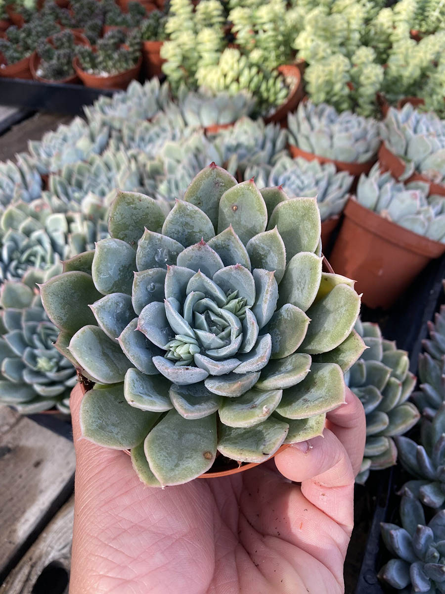 Ideal for retail garden centers, the Echeveria Ripples is a popular succulent with wavy, blue-green leaves that form stunning rosettes. Its compact size and striking appearance make it a perfect choice for small pots, terrariums, and succulent arrangements. This low-maintenance plant thrives in bright indirect light and well-draining soil, making it a favorite among beginners and enthusiasts. Easy-care succulent with minimal water needs and simple care requirements.