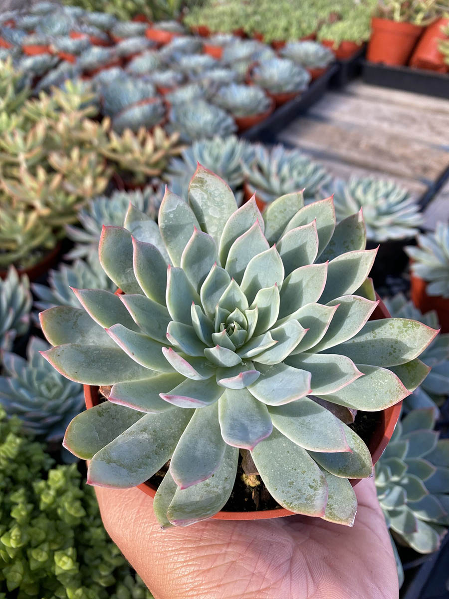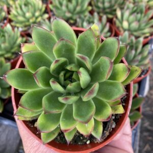 The 4″ Echeveria Secunda is a stunning succulent with rosettes of blue-green leaves, ideal for both exterior landscapers and retail garden centers. This low-maintenance plant thrives in well-draining soil and bright light conditions, making it a versatile choice for outdoor landscapes and indoor arrangements. Its drought-tolerant nature and unique coloration make it a standout addition to rock gardens, containers, and xeriscape designs. A must-have for plant enthusiasts seeking easy-care, visually appealing options.