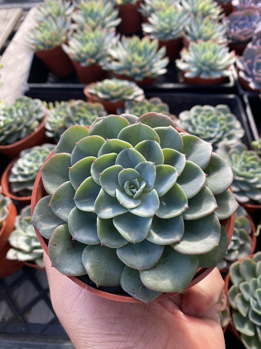 The 4″ Echeveria Swirls offers mesmerizing rosettes with delicate, swirled patterns in soft pastel colors, perfect for captivating retail garden center customers looking for trendy, easy-care plants. Enhance tablescapes or window displays with its elegant flair. Water: 2, Light: 3, General Care: 1