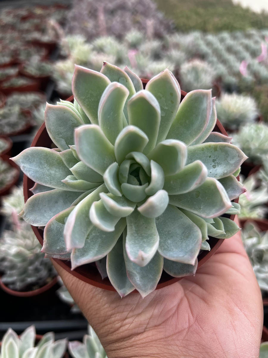 The Echeveria Violet Queen is a stunning succulent with rosettes of striking purple, fleshy leaves that add a pop of color to any space. Perfect for both indoor interiorscapes and retail arrangements, this plant is easy to care for and requires minimal water and bright light. Ideal for beginner plant enthusiasts and those looking to add unique textures to their displays.
