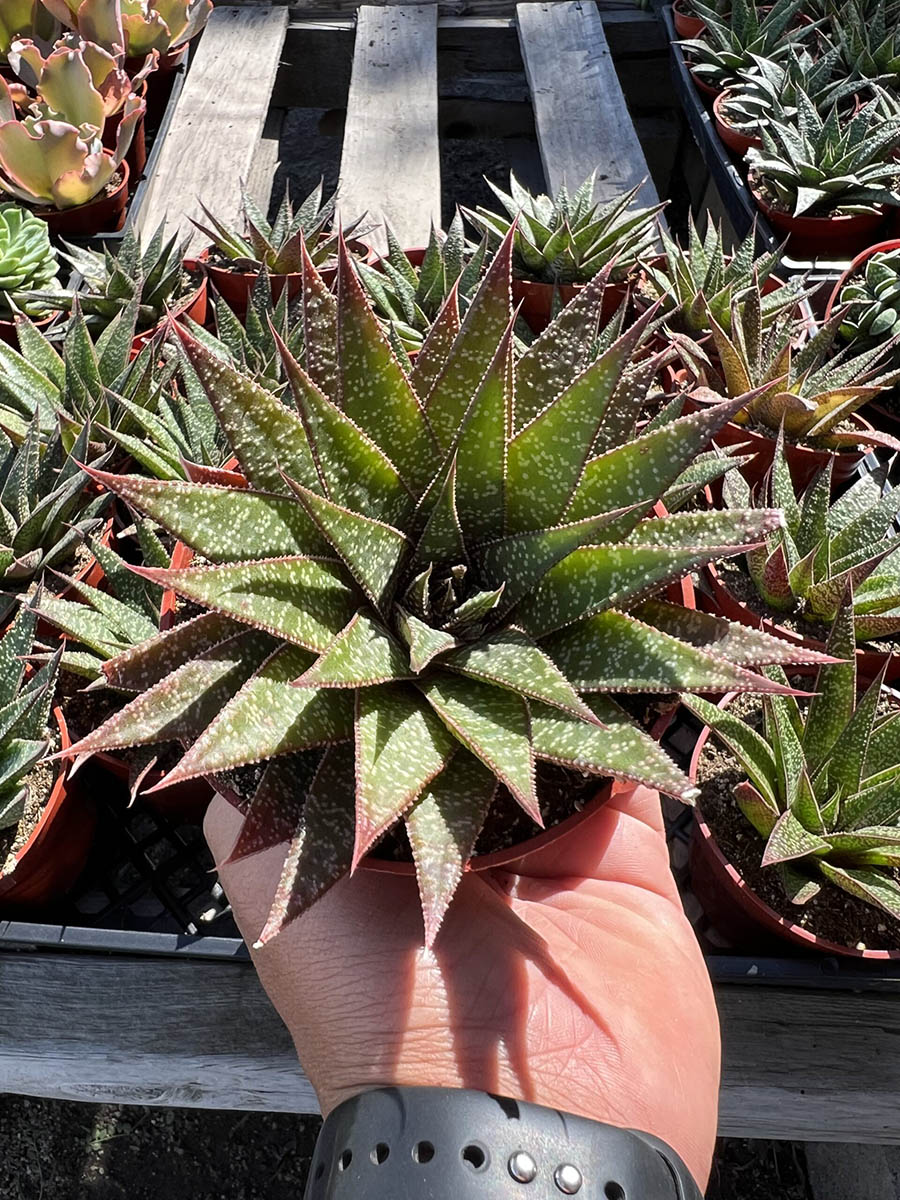 The Gasteraloe Flow, with its unique blend of Gasteria and Aloe traits, features compact rosettes of fleshy, green leaves marked by striking spots. This versatile succulent is perfect for interiorscape arrangements and retail displays, adding a pop of color and texture. Thriving with moderate water and bright light, this plant offers easy care, making it ideal for both landscapers and garden centers.