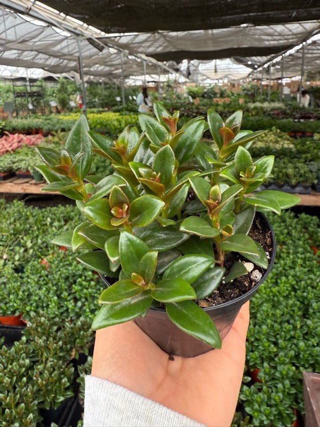 The eye-catching 4″ Nematanthus ‘Goldfish Black Gold’ features vibrant orange blooms resembling lively goldfish, set against glossy, dark green foliage. This plant delights interiorscapers seeking a pop of color and retail buyers aiming for unique, easy-care specimens that attract attention. An excellent choice for bright, indirect light settings.