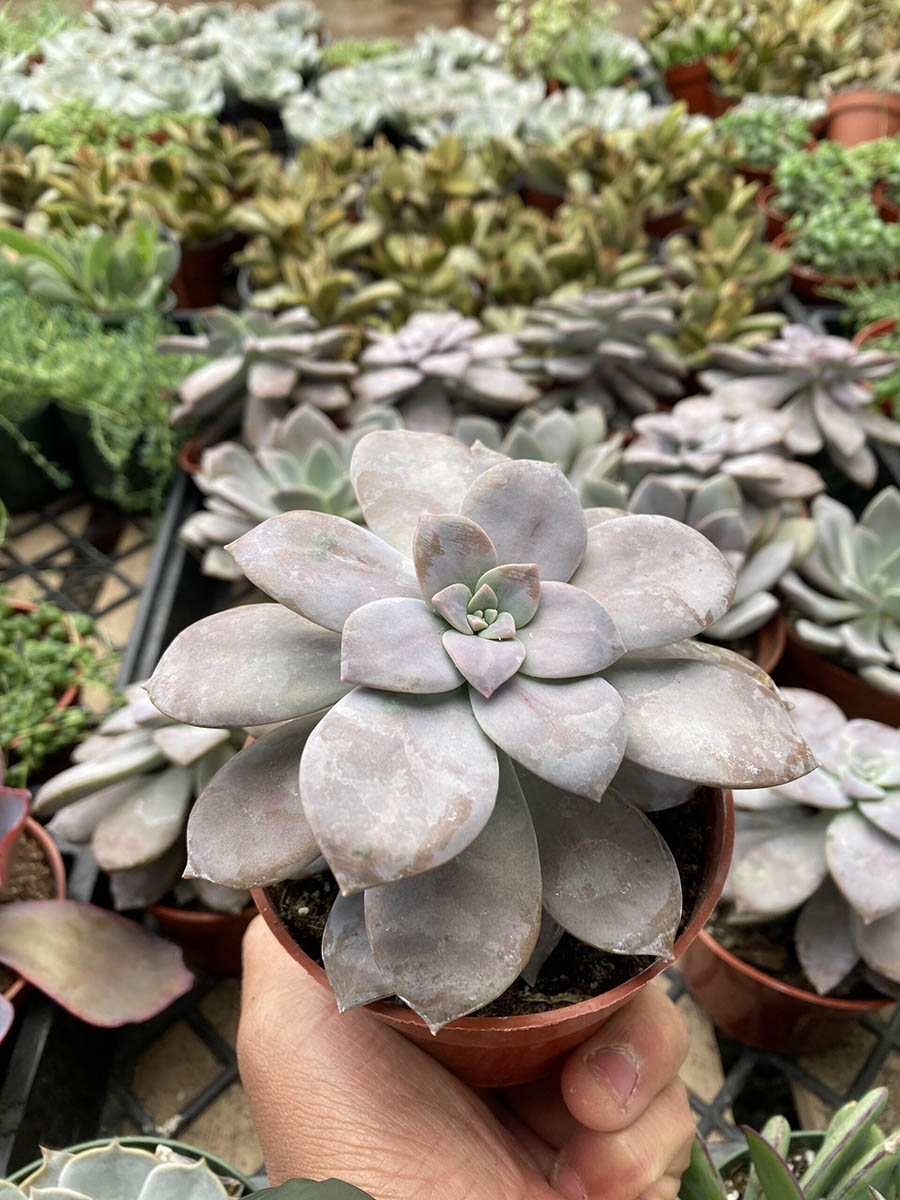 The Graptopetalum Pentandrum showcases stunning rosettes of silvery-blue, fleshy leaves that create a striking visual contrast. Ideal for both interior and retail environments, this plant is low-maintenance and suitable for beginners. It prefers bright light and infrequent watering, making it a versatile choice for various settings.
