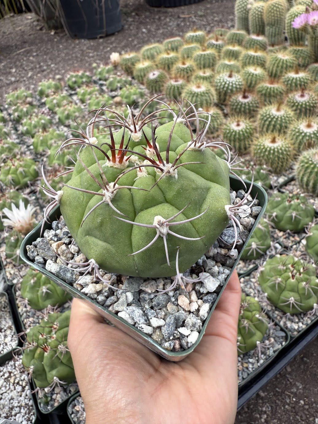 The Gymnocalycium chiquititanum SQ is a compact cactus variety with striking ribbed patterns and a charming spherical shape. Suitable for retail garden centers, this plant is low-maintenance and visually captivating, making it an excellent choice for novice gardeners or collectors. Pair with other succulents for an attractive display.