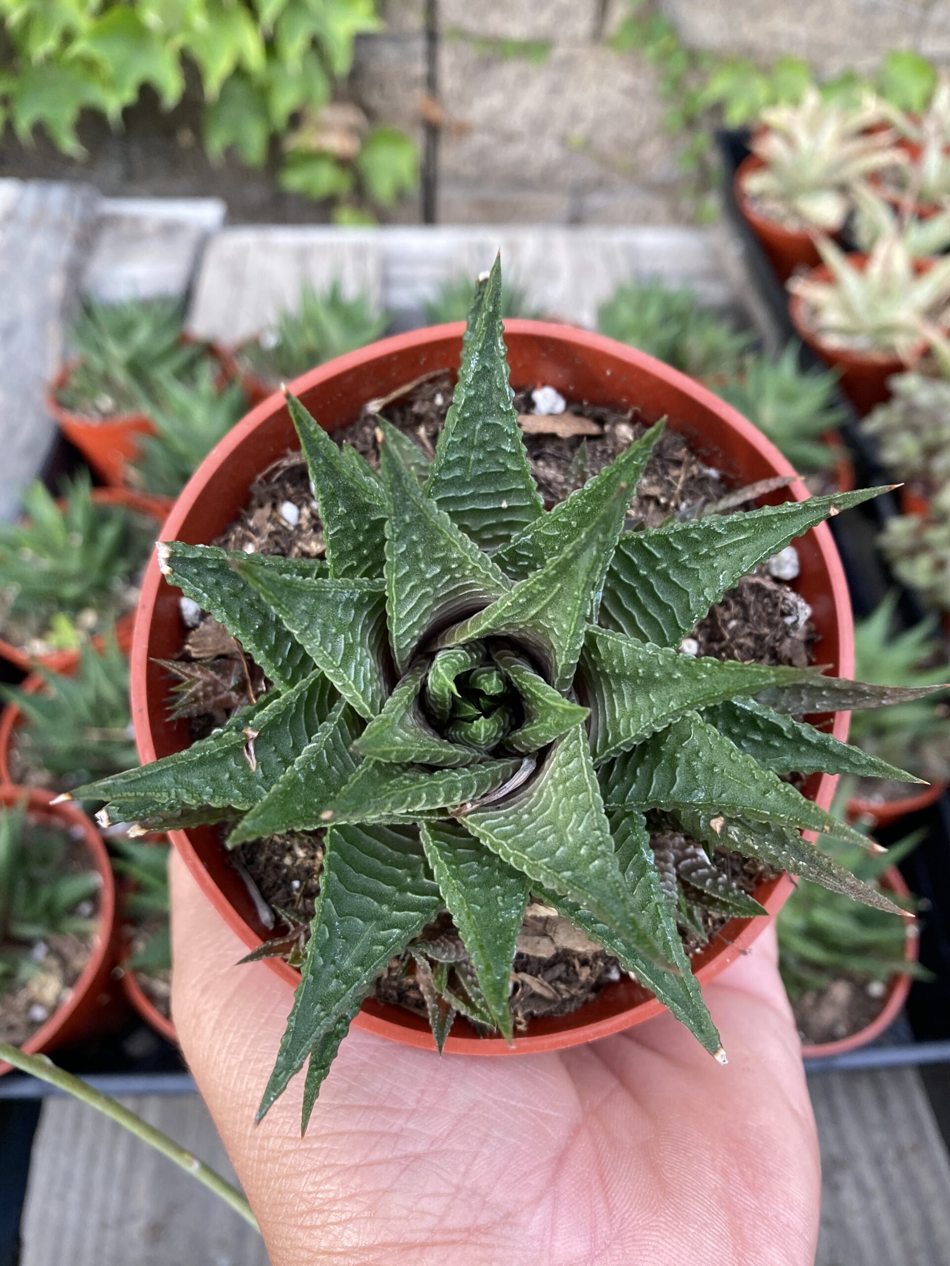 The Haworthia Limifolia, known for its distinctive rosette shape and beautifully patterned leaves, is a sought-after choice for both landscapers and garden centers. Ideal for interiorscapes and small pots, it offers a stunning display with minimal care requirements. This succulent prefers moderate watering and indirect sunlight, making it a versatile addition to any collection.